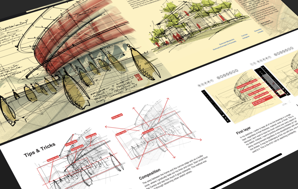 This sketch is a demonstration of a new smooth brush feature by the App. I did some exercise with pen and marker tool to see how it would be helpful to draw curvy lines like this image. I have attached together a working file (Morpholio Trace file) , PSD file and a PDF e-Book file that explain my drawing tips. I hope this would be beneficial to many! Thank you for your support. Cheers!